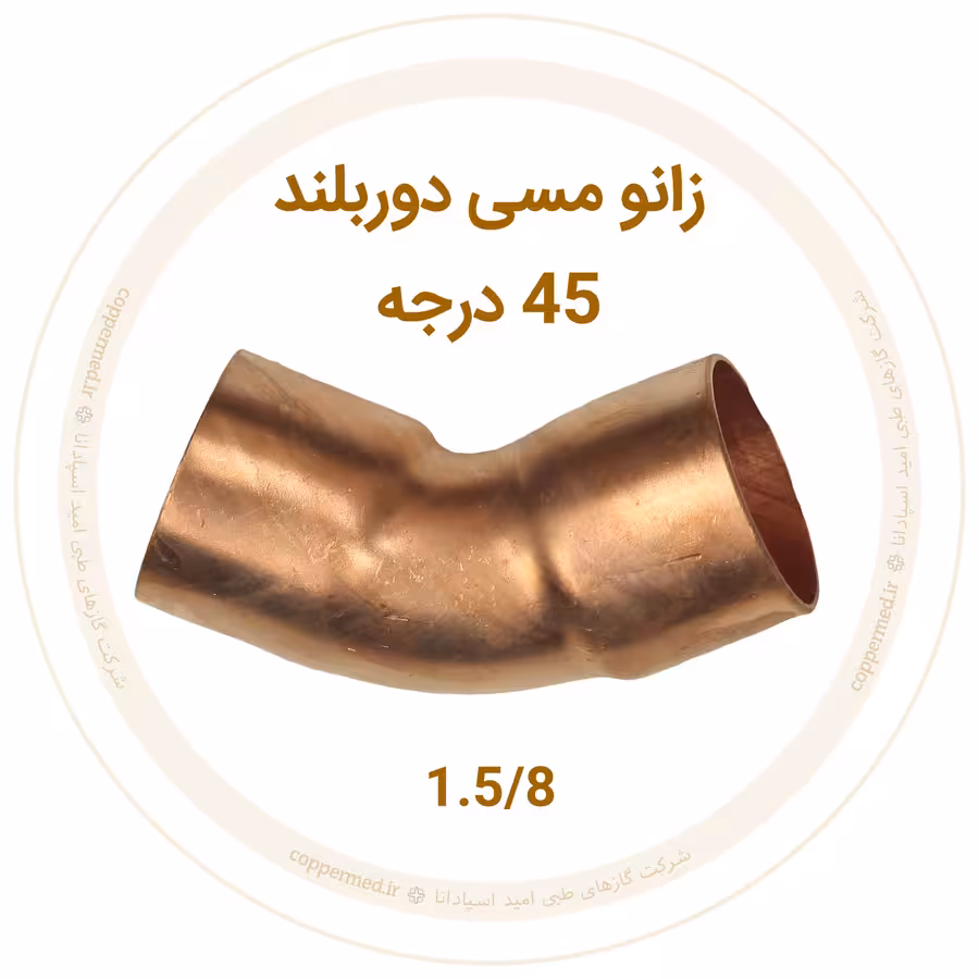 زانو مسی 45 درجه دور بلند سایز 1.5/8 برند مهراصل