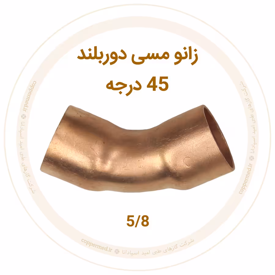 زانو مسی 45 درجه دور بلند سایز 5/8 برند مهراصل